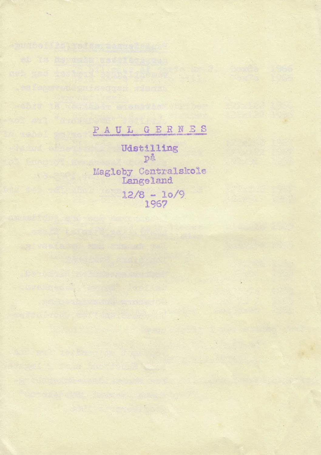 Solo exhibition by other artist with some works by Poul Gernes